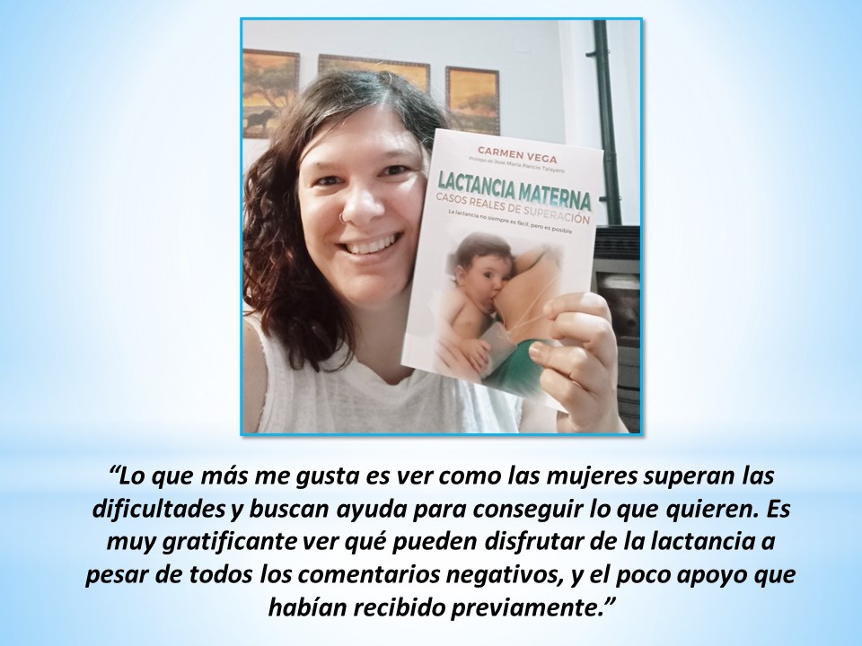 Lo que más me gusta es ver como las mujeres superan las dificultades y buscan ayuda para conseguir lo que quieren. Es muy gratificante ver qué pueden disfrutar de la lactancia a pesar de todos los comentarios negativos, y el poco apoyo que habían recibido previamente.